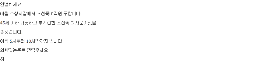 - 11 今天 10:16 河南市场钟点工 하남시장알바