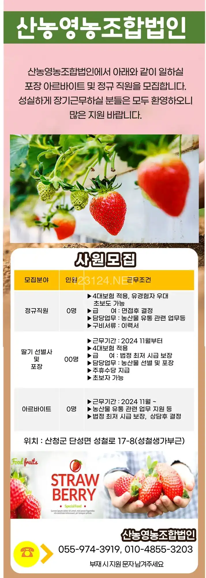[정규직원] 딸기선별및포장직원모집/ 급여협의/상세모집참조 (산농영농조합법인)