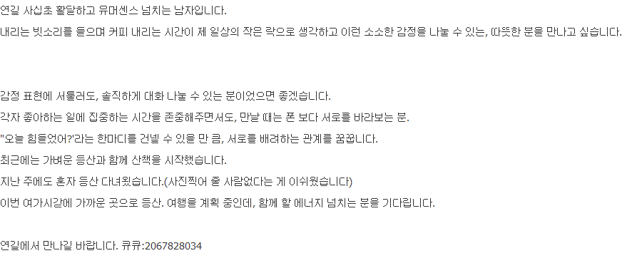 - 1359 今天 07:23 솔로 남 후반생함께할 여자찾음 [2]