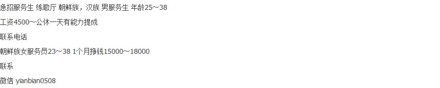 - 1040 今天 18:08 歌厅招男服务生//노래방 복무원 모집 함다