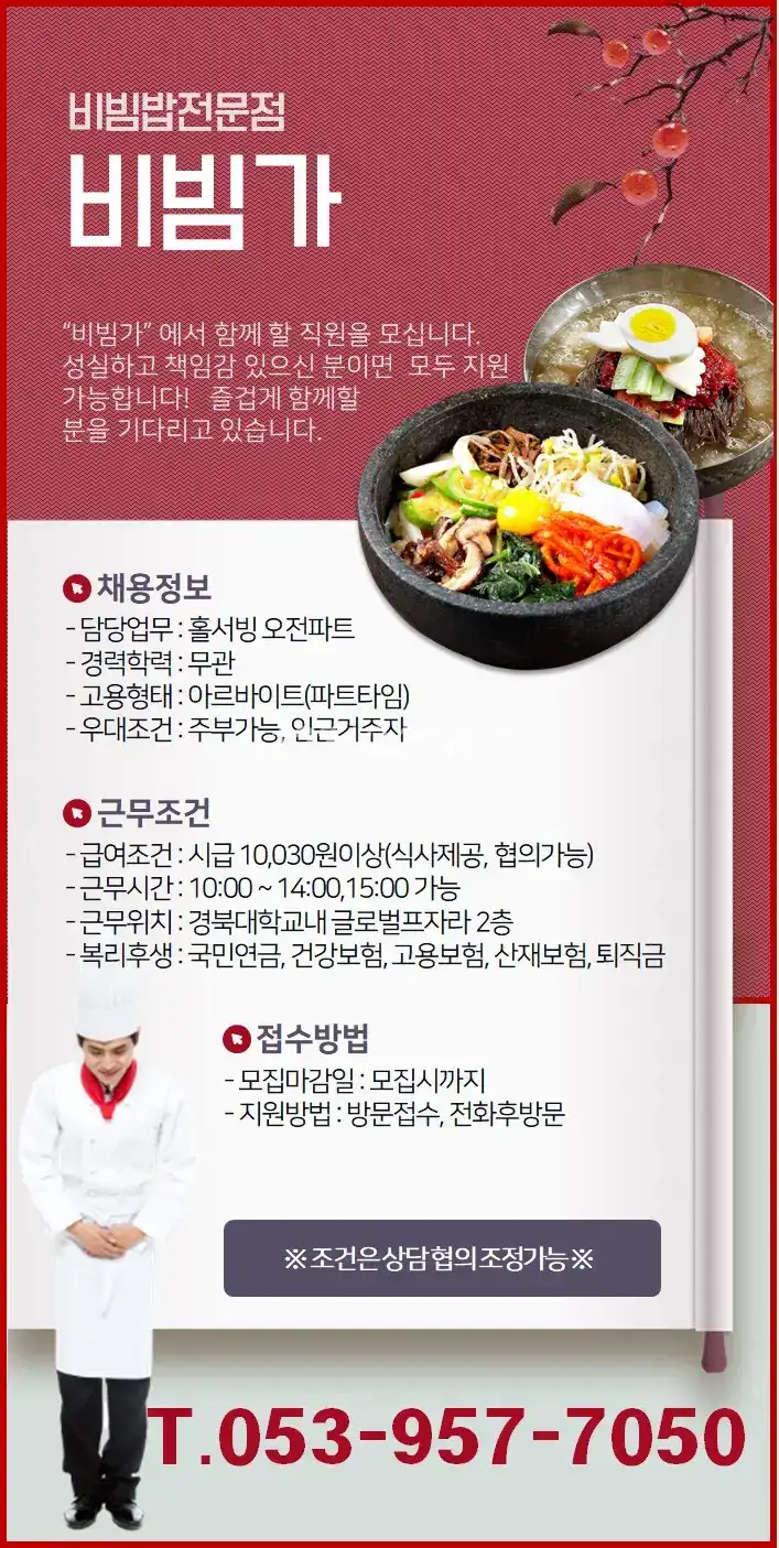[알바] 홀서빙 오전파트 아르바이트모집 주5일근무