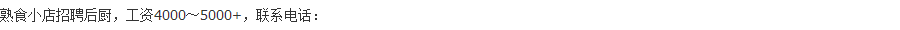 - 33 今天 17:52 熟食小店招聘后厨,工资4000~5000+,联系电话:2828788