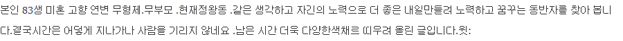 - 268 今天 17:43 소소한 살아가는 인생 이야기를 함께 담아 볼 여성 친구를 찾습니다