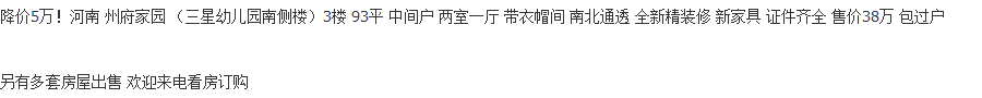 - 3 今天 02:38 降价5万!河南州府家园3楼中间户两室一厅全新精装修新家具