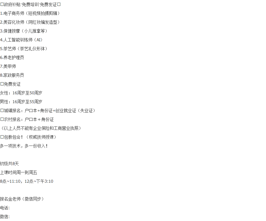 - 18 今天 18:13 政府补贴·免费培训·免费发证