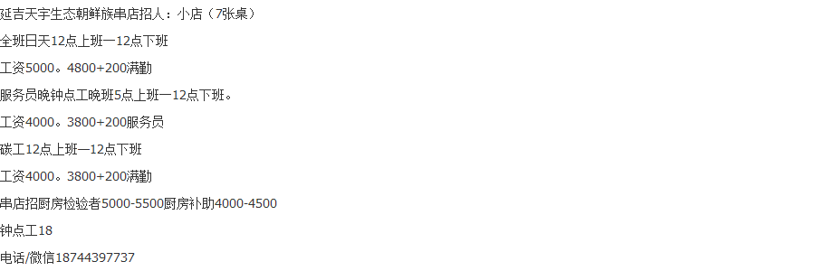 - 206 今天 18:55 룡정촬떈에서직원구함다龙井串店招员工