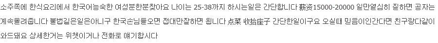 - 866 今天 14:01 여자옷가계서 微信客服 2명 구합니다.