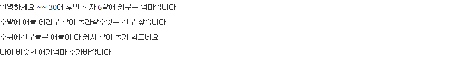 - 22 今天 09:44 애기엄마 친구 찾습니다