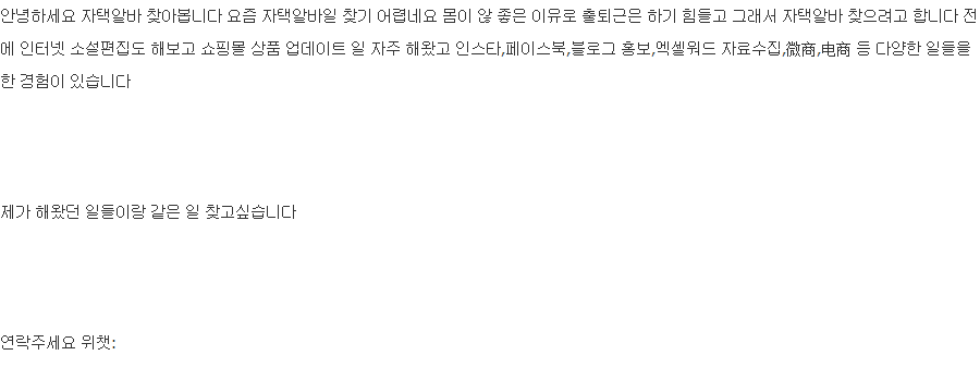 - 14 今天 12:53 자택근무 일자리 찾아봅니다