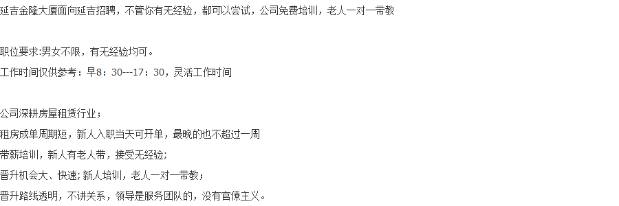 - 3692 今天 17:56 연길 모부동산에서 영업직을 구합니다 招聘房产经纪人