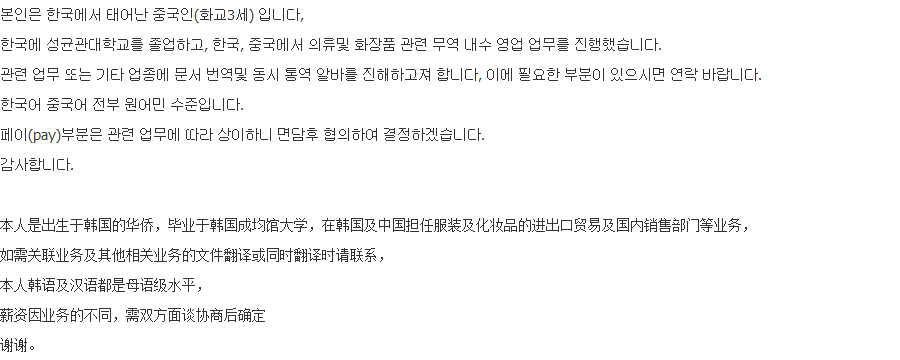 - 7 今天 13:43 번역및 동시 통역 해드립니다. 标准翻译及同时翻译