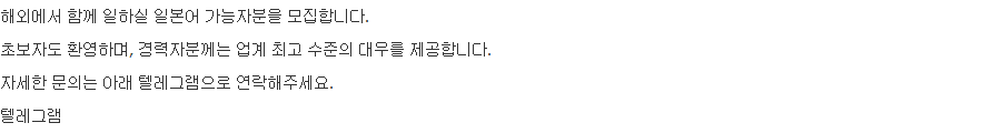 - 11 今天 14:36 일본어 가능자 구합니다