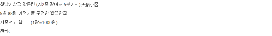 - 736 今天 16:23 세집줌다월세단기장기出租月付短租长租