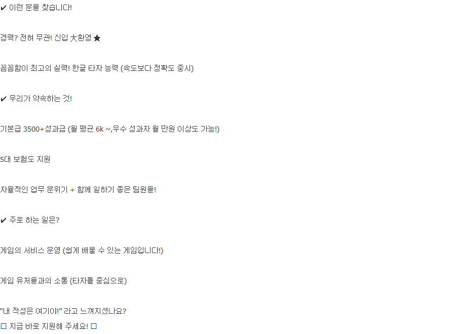 - 1009 今天 17:54 ★경력 무관★ 게임 몰라도 돼요! 당신의 한글 실력을 펼쳐보세요 ★