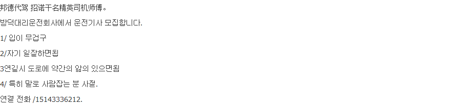 - 634 今天 07:04 연길시내 새로오픈한모노래방에서 남성복무원구합니다