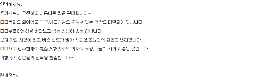- 1650 今天 03:05 가격이 많이 내렷슴다 丽水宜家3 층 83평