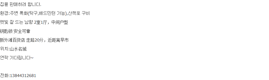 - 308 今天 11:45 十中加油站附近出租房屋。10중 근처에 집세줍니다.