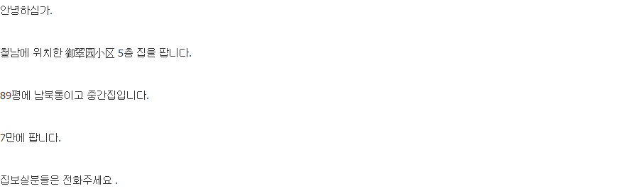 - 437 今天 13:07 팔집 卖房 龙井룡정 首三万