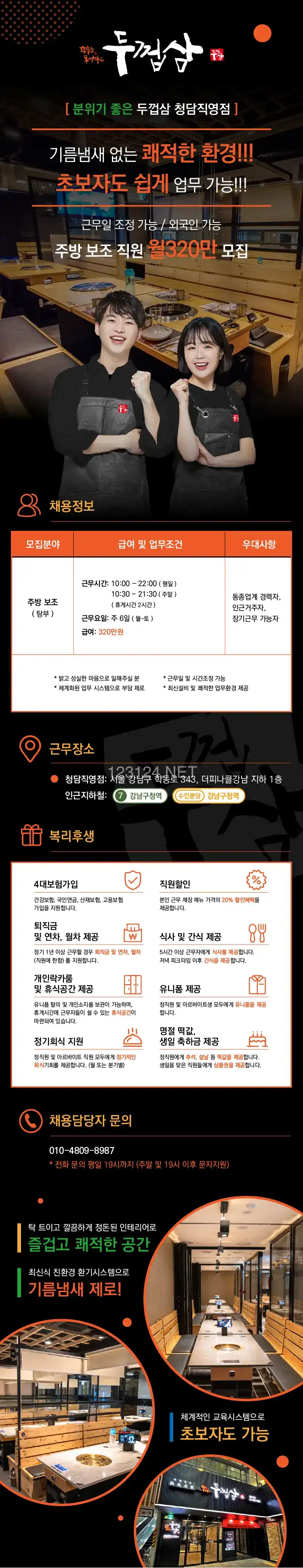 [두껍삼 청담] 주방보조 (탕부) / 월 320만 / 정규직 / 쾌적한 환경