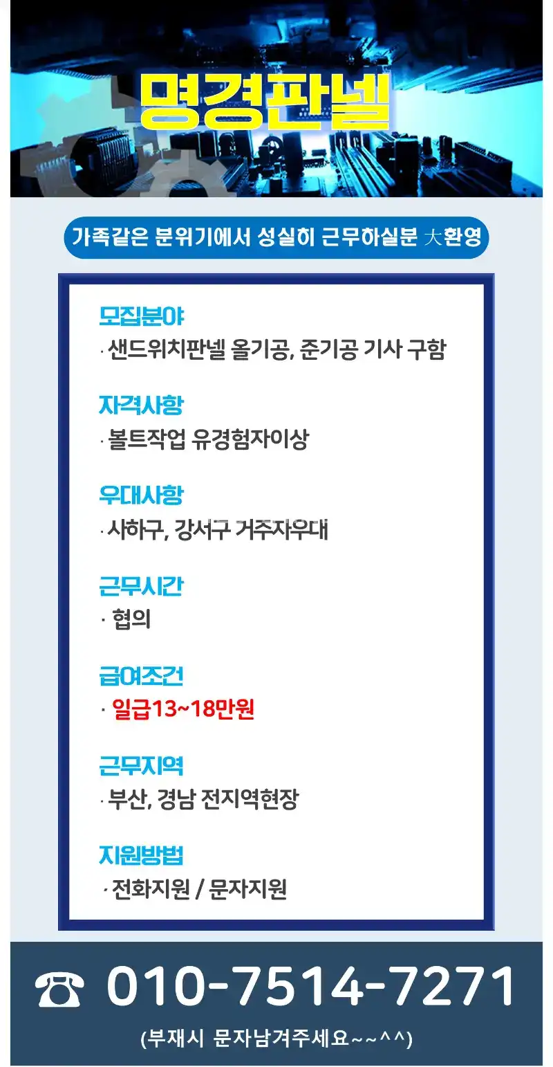 [명경판넬] 샌드위치판넬 올기공, 준기공 기사 구함