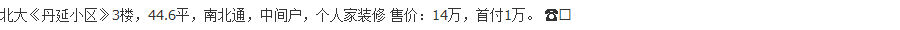 - 13 今天 13:26 14万北大市场丹延小区3楼45平1室1厅