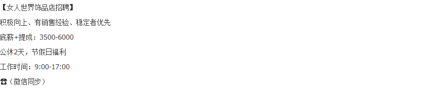 - 55 今天 10:03 女人世界一楼饰品店招聘
