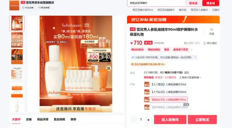 雪花秀 人参 肌底精华 90ml 修护 补水 保湿