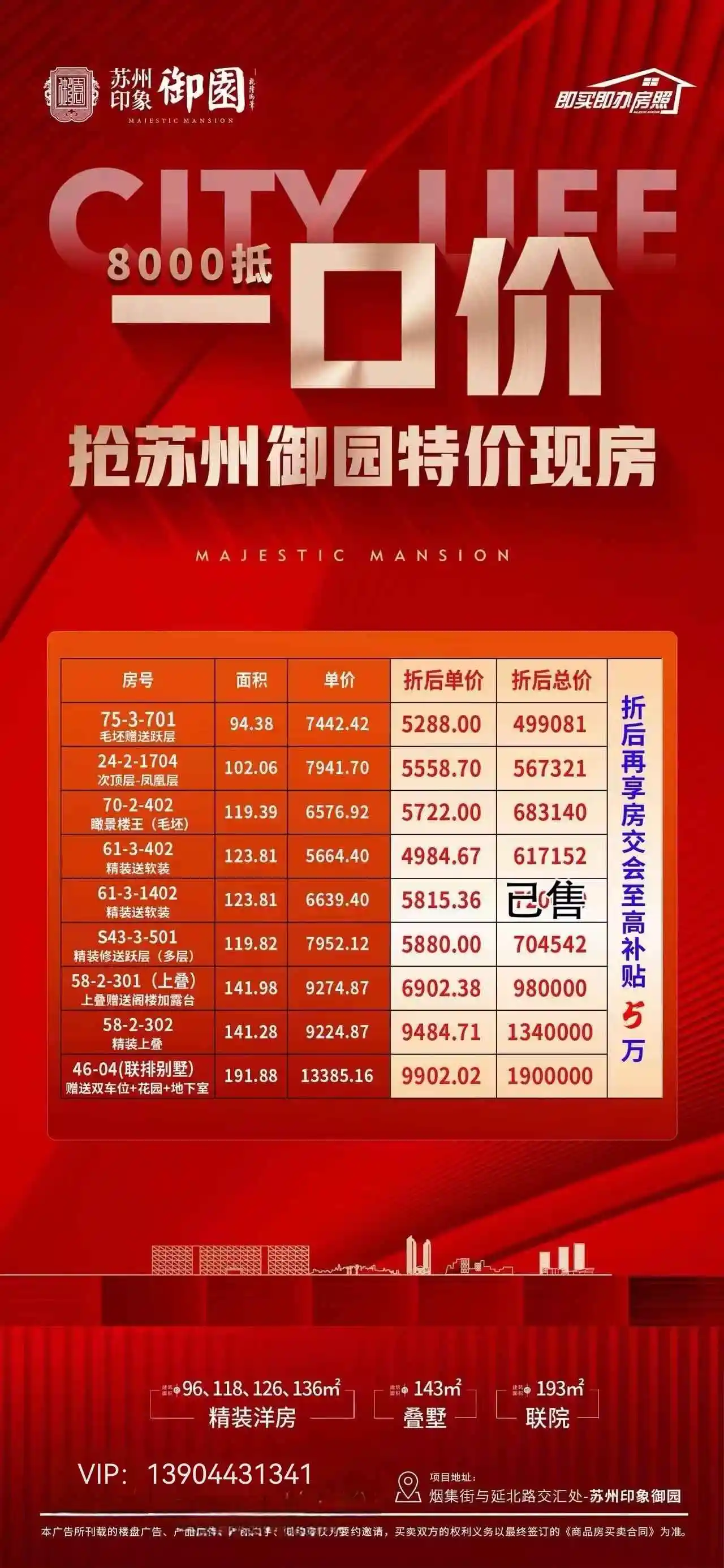 - 194 今天 03:29 降价10万 发展苏州印象三期79平到102平两室一厅精装