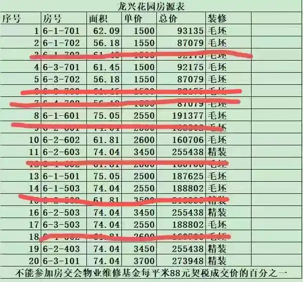 北大 龙兴花园清尾盘!!!一共20套电梯楼,剩余不多了,全部一口价(不议价)!!!