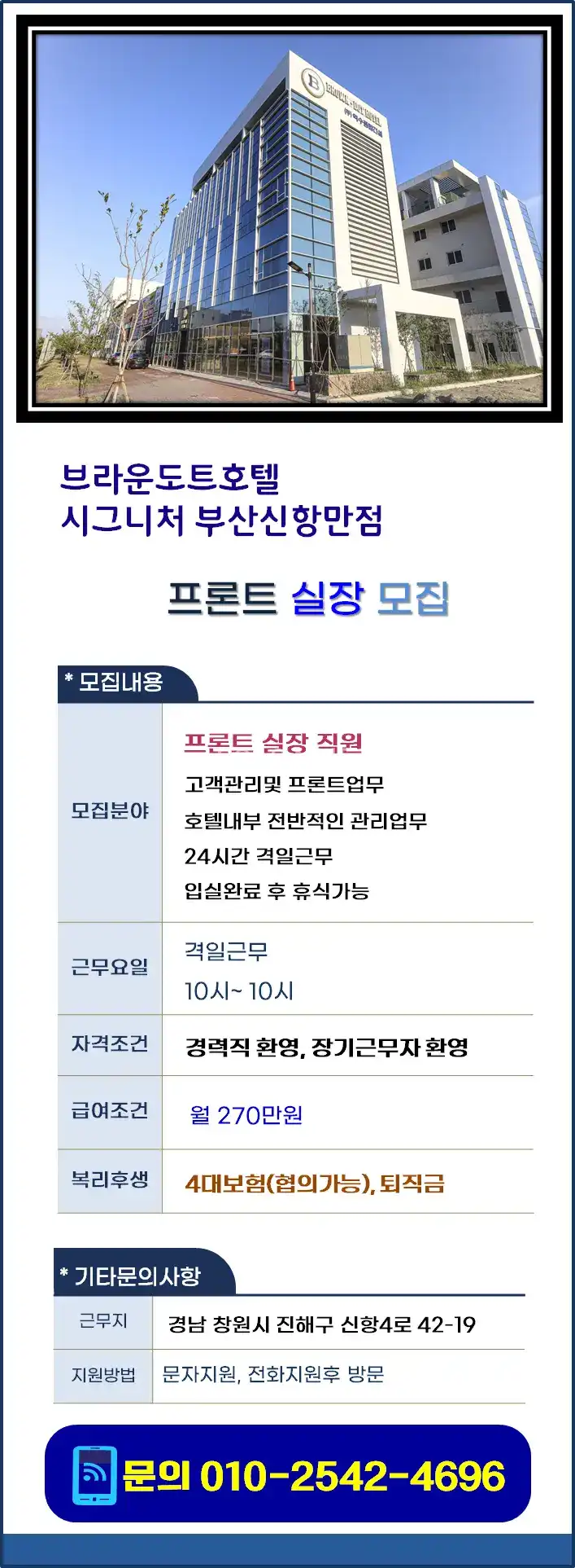 +추천+ 브라운도트 시그니처호텔. 프론트실장 직원모집