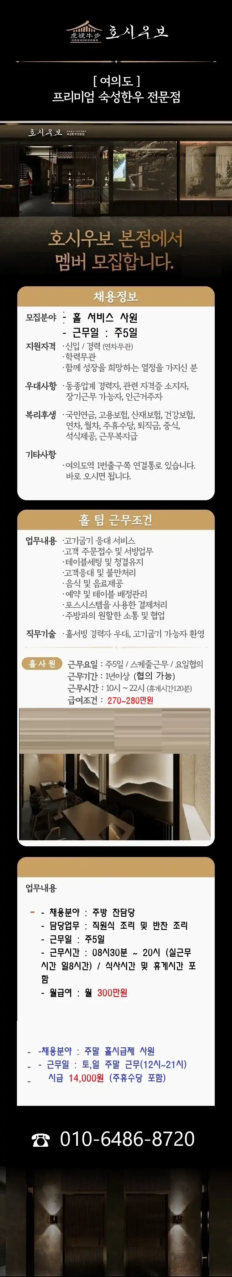 +[주5일 근무] 홀 서비스 사원 / 주방찬담당/주말 홀시급제 사원