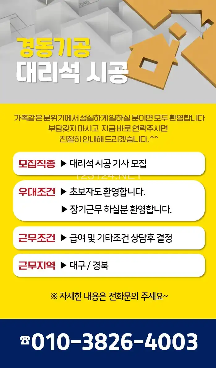 +신규구인+ [ 대리석 시공자 구함 ] 초보자도 환영합니다.