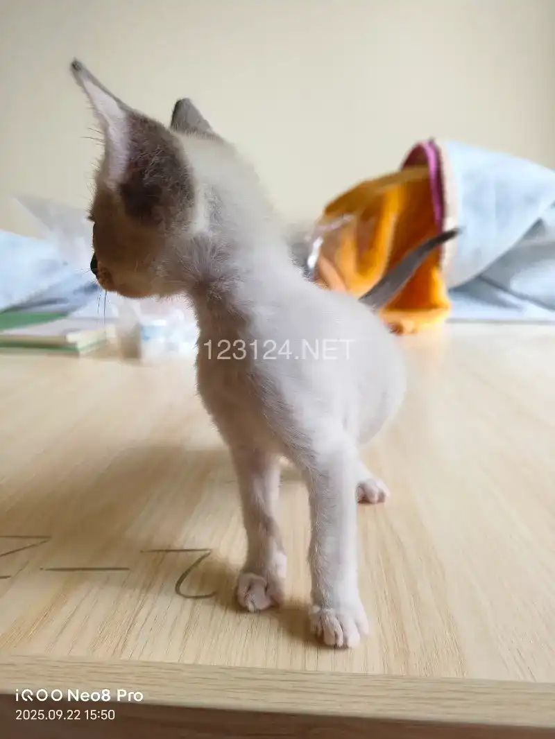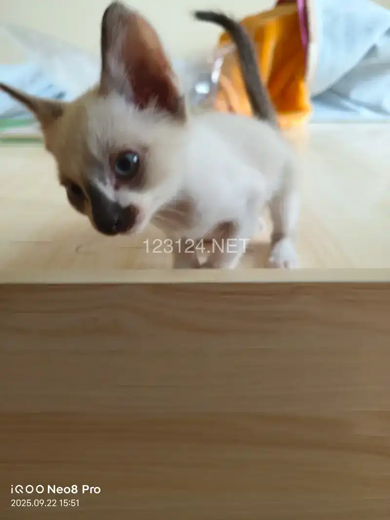 两月半的猫 会用猫砂盆 很活泼 是暹罗猫血统 只要50,已做体内外驱虫,延吉市自提。
