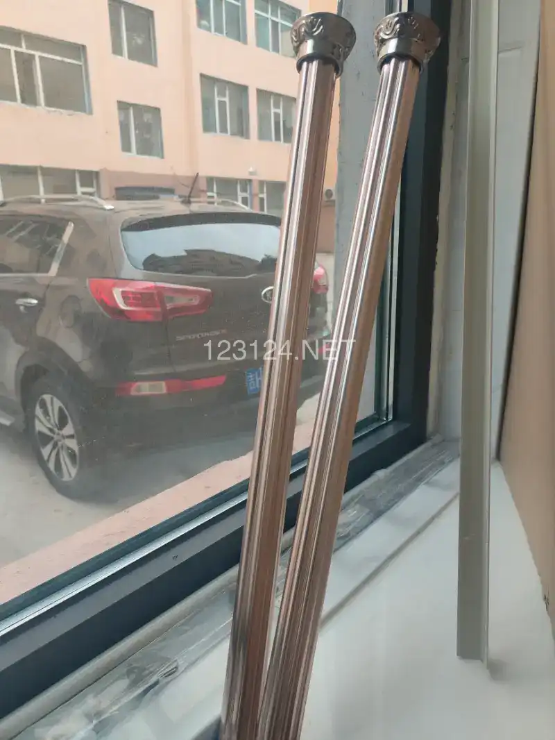 3) 挂钩款罗马杆2.5厚度,玫瑰金,很新,共两根,每根尺寸为140公分,拼接用的